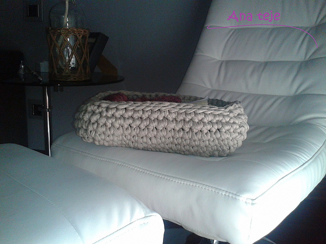Durante unas horas he aparcado mis agujas, pero no he dejado de hacer labores. Llevaba tiempo pensando en hacer una cesta para mantener juntos y ordenados mis materiales cuando estoy tejiendo en el salón.